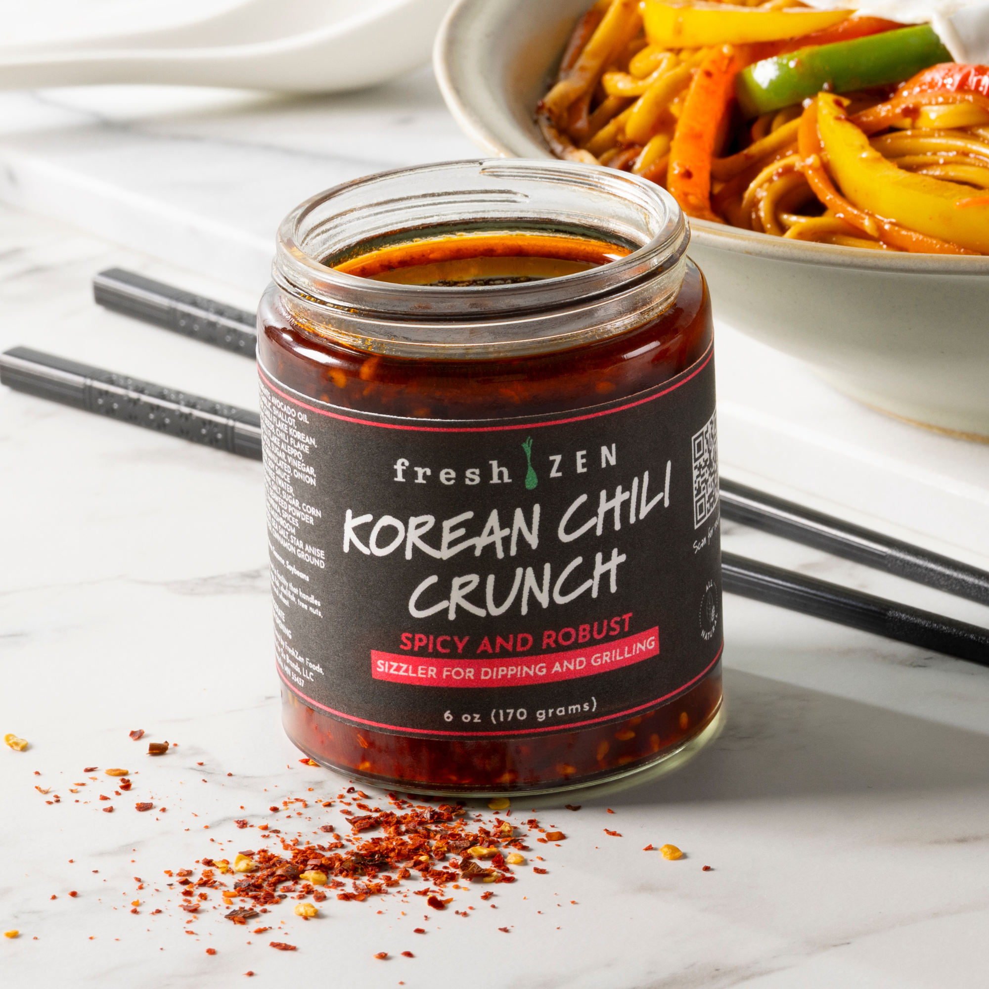 modern kitchens - a bold chili oil infused with smoky gochugaru chilies, crunchy garlic, and umami flavor. -